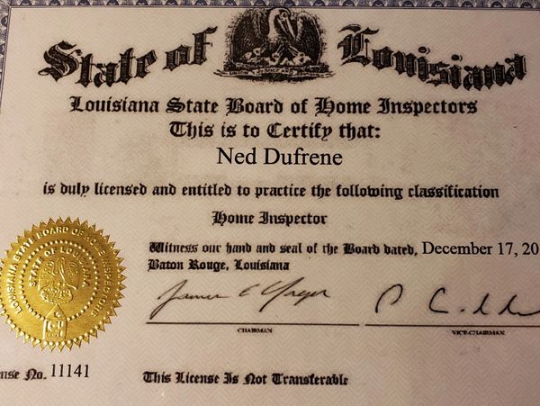 My background includes many years in the home building industry, working alongside my late father, Ned Dufrene Sr., a respected building contractor in Louisiana. The early skills and insight I gained from that experience, along with more than 32 years in the service industry, provide me with a unique perspective and exceptional attention to detail as a Home Inspector. I am passionate about my work and am dedicated to assisting Clients through the important process of buying or selling their home.